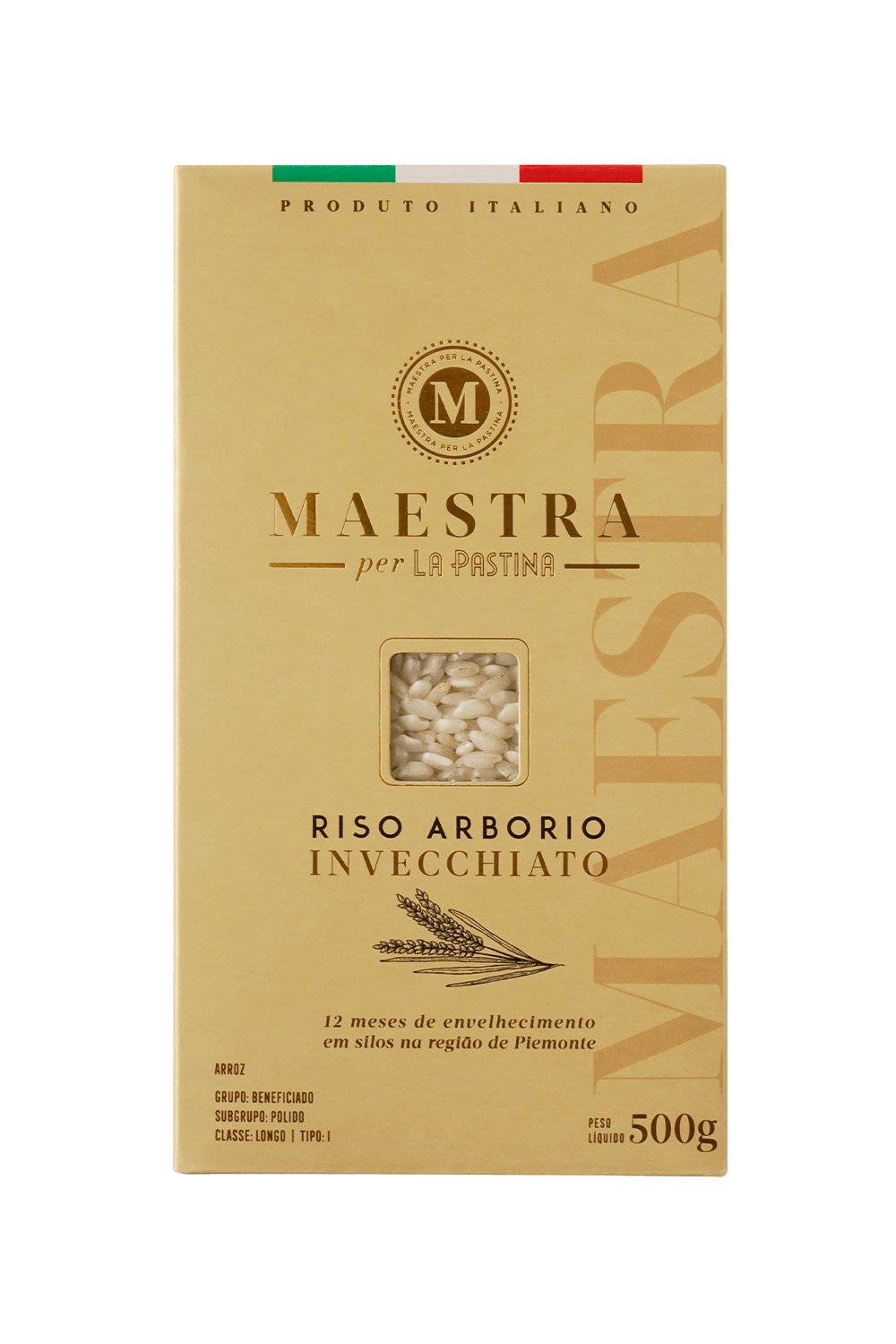 O arroz arbório envelhecido Maestra passa por um processo de envelhecimento de 12 meses, em que ele fica armazenado em um silo sob controle constante de temperatura e umidade, além de passar por tratamento para garantir a qualidade do grão. O processo de envelhecimento potencializa a capacidade do arroz de absorver sabores e contribui para que os grãos fiquem mais íntegros e conservem melhor o amido durante o cozimento.