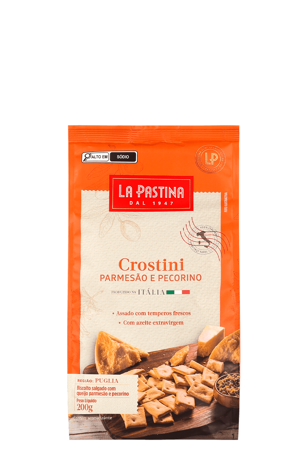 Remete à tradição do pão italiano cortado bem fininho e assado lentamente até dourar e ficar perfeitamente crocante. Essa versão é elaborada à base de farinha de trigo, azeite de oliva extravirgem, parmesão e pecorino. De sabor mais marcante, devido a adição dos queijos, pode ser servido como snack, acompanhando caldos e sopas ou como aperitivo, junto de antepastos, bruschettas, patês e geléias.