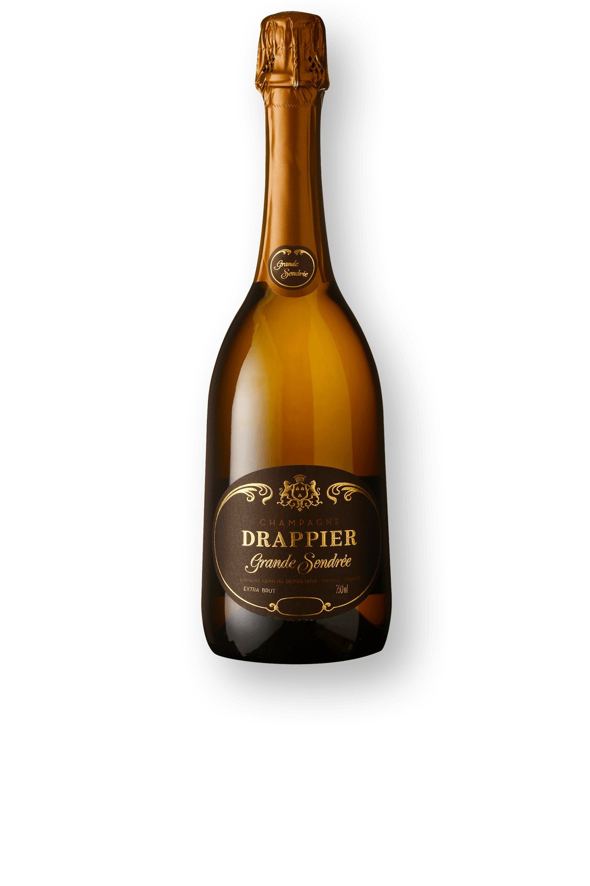 Grande Sendrée assinado por Drappier, é criado com um blend de Pinot Noir e Chardonnay trazendo notas de frutas vermelhas maduras como cerejas, notas florais, de baunilha e de especiarias. Seu nome refere-se à um antigo celeiro queimado no ano de 1836, próximo à área onde as uvas provêm. Drappier Grande Sendrée é uma cuvée especialmente elaborada para longa guarda, podendo evoluir por mais de uma década.