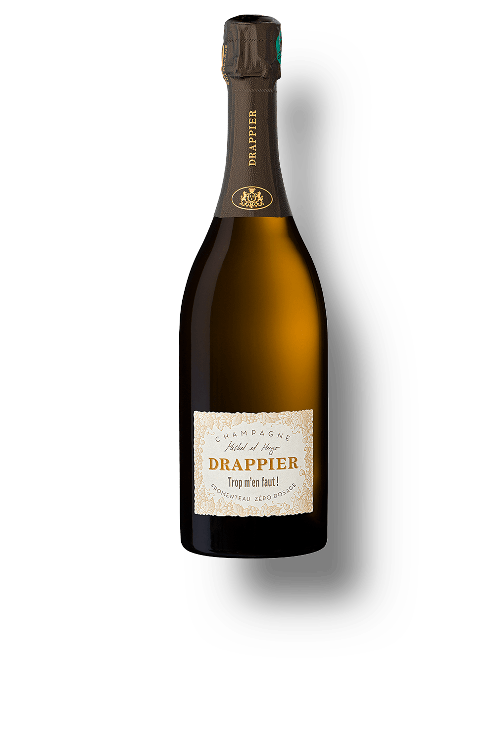 “Trop m'en Faut!” é um anagrama de "Fromenteau", nome dado a Pinot Gris na região de Champagne. A expressão significa "Tão bom que você nunca se cansa!“ Elaborado 100% com Fromenteau orgânica, proveniente das safras 2019 e 2020. É um vinho sem adição de açúcar, que estagiou em contato com as leveduras por 3 anos, ganhando notas defumadas, de frutas secas e toques de pão, que se mesclam a notas florais e de damascos.