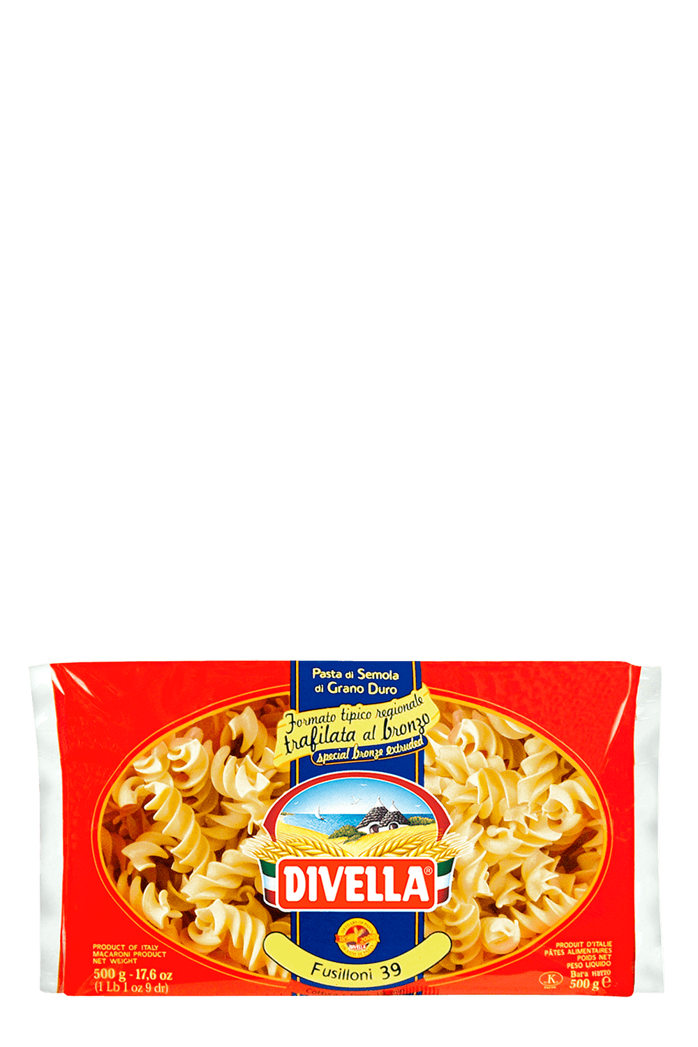 A Divella, que há 130 anos produz a legítima pasta de grano duro 100% italiana, apresenta o fusilloni, uma variação do tradicional fusilli, porém maior e com textura rugosa. Devido ao seu formato em espiral, que lembra um parafuso, ela proporciona uma textura interessante e carrega bastante molho. Ela é especialmente indicada para molhos mais robustos, com carne ou queijo.