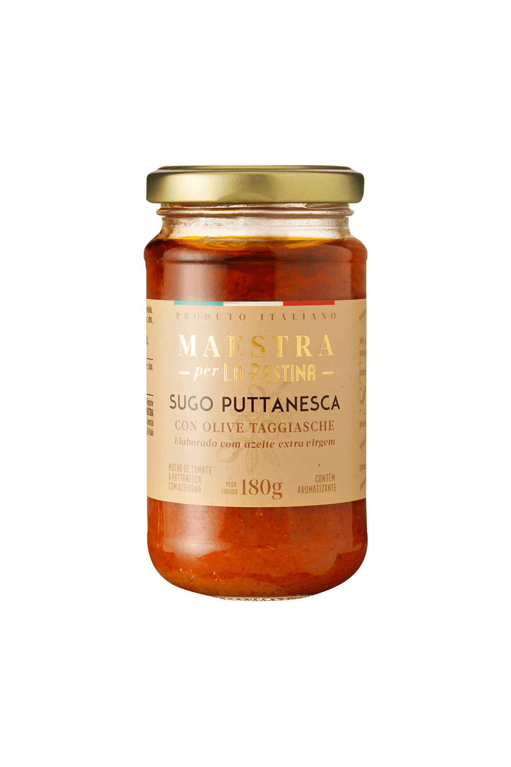 A origem do molho Puttanesca é frequentemente associada aos prostíbulos de Nápoles, onde as prostitutas preparavam o “Spaghetti alla Puttanesca” para atrair clientes com o seu aroma irresistível. O molho Maestra é elaborado com tomate, azeite extravirgem, aliche, azeitonas Taggiasche (típicas da região da Ligúria), alcaparras, especiarias e uma seleção de leguminosas. Seguindo uma receita tradicional italiana, é livre de conservantes ou aromatizantes artificiais, oferecendo um sabor único.